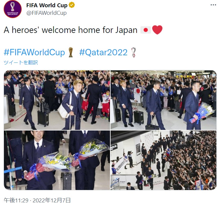 FIFA公式にヒーローと称賛されてるのが今回のWCの日本だw