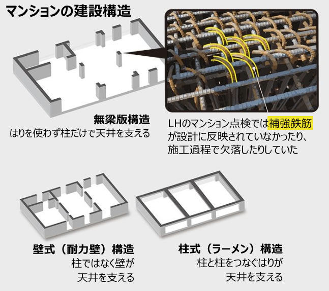 国土交通部は今年4月、仁川市の黔丹マンション地下駐車場崩壊事故を受け、LHが発注し、2017年から22年にかけて着工した無梁版構造(フラットスラブ構造)のマンション団地91カ所の地下駐車場に対する全数調査を実施した。前日に15カ所で不良を確認した事実を公表したのに続き、マンション名、設計・施工・監理業者、不良施工の規模と原因を明らかにした。設計図面に誤りがあったり、別の階の設計図面で施工したりしたことが原因と判明した。韓国は海外で世界最高層ビルを施工する「建設大国」だが、マンション一つまともに建てられないのかという批判の声が上がっている。