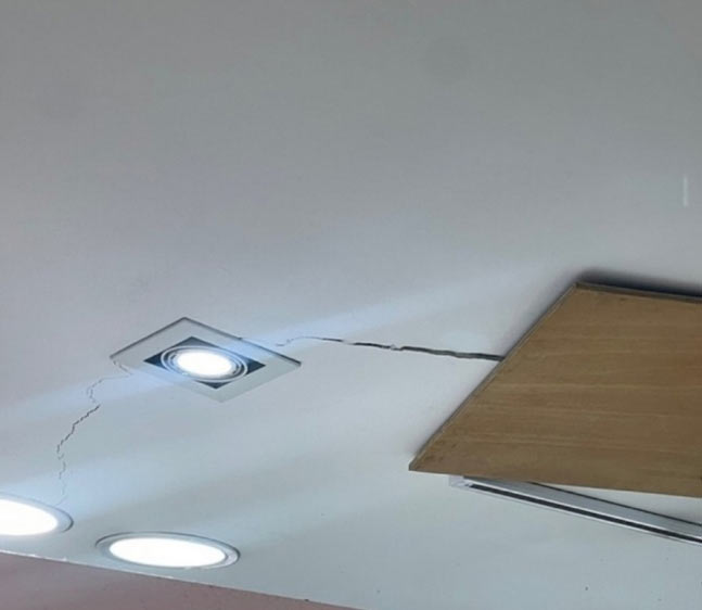 吊り天石膏ボードがあんなひび割れ起こすくらいだからな。