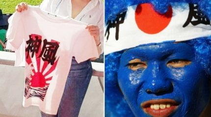 ソンギョクソンシンギョン教授は本日、( 9th ) Facebookで、「カタールのシーンで日本のチームの試合を見たヌガーが私にレポートの写真を送ってくれたが、神風を応援する別の方法だった。 Tシャツ。」。