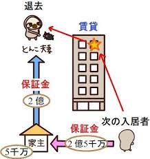 それを避ける為には賃借人が次の賃借人を自費で探さないといけないのだが、相場が下がっている時には大家が妥協しないので、見つからないという地獄。今の韓国がこの状態。チョンセが滅びると共にチョン資産も滅ぶ。w
