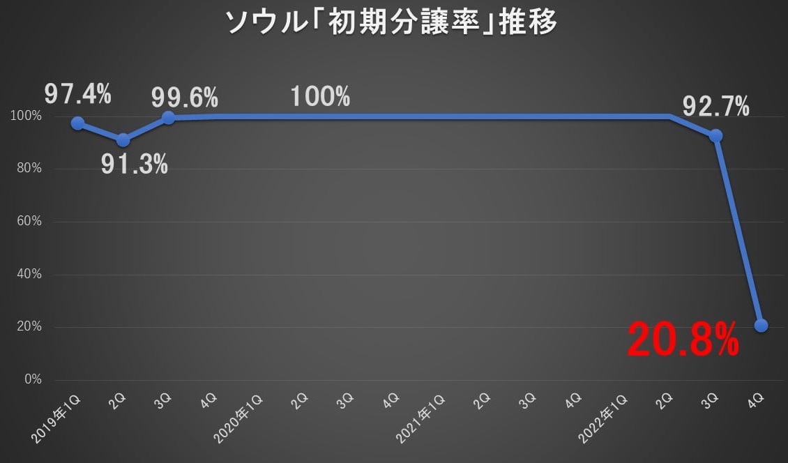 ソウルの新規分譲マンションの契約率が、たったの、たったの【20.8%】だって。