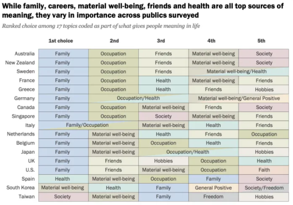 経済先進国17カ国を対象とした「人生に意味を持たせるものは何か?」という調査を行ったところ、韓国だけが唯一「物質的な豊かさ」を第1位に挙げた。