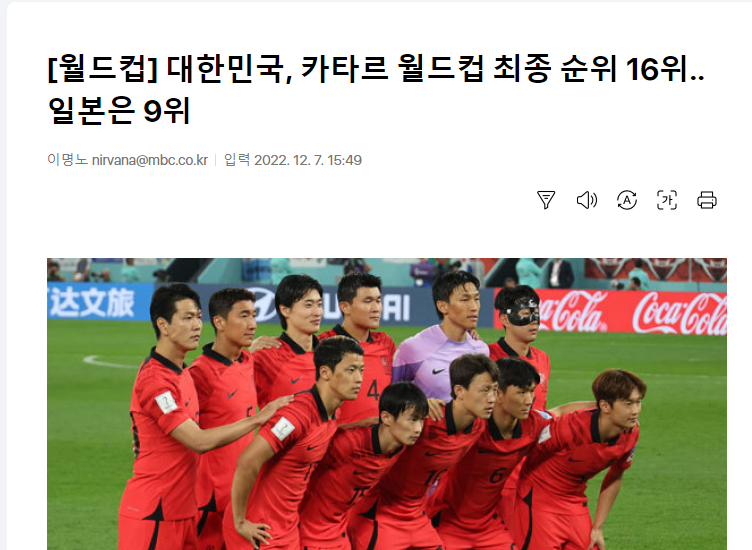 サッカー韓国代表たちが相次いで日本のサッカーを高く評価する発言をしている。2022国際サッカー連盟(FIFA)ワールドカップ(W杯)カタール大会でそろって決勝トーナメント1回戦で敗退したものの、プレーした当の選手たちは韓日間の実力差を感じ、認めたものと受け止められている。