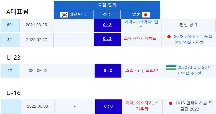 言い換えれば「勝負づけは済んだ…」しばらくの間は韓国代表は日本代表の相手にならないだろう日本代表は今の谷間の世代がようやく終わり、今後は黄金世代に突入する