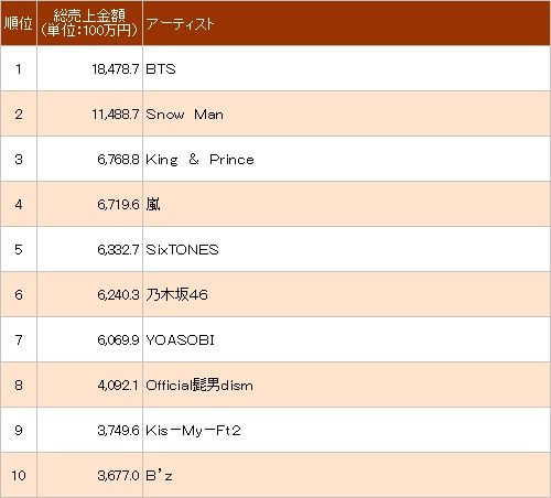 オリコンチャートは、架空売上を除けないので、アイドル系事務所のグループの数字は使えない。