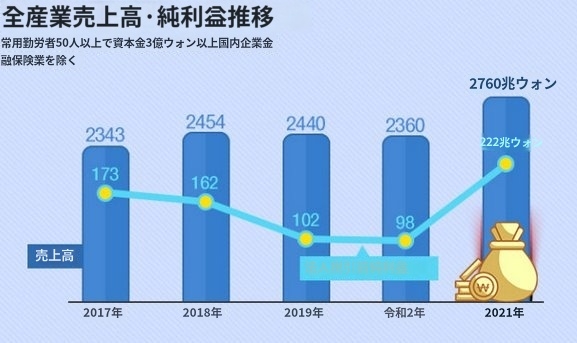 再来年20位日本企業昨年の企業純利益63兆円 >>>>>> 韓国昨年の企業純利益222兆ウォン