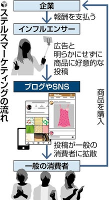 2012年には、飲食店の口コミサイト「食べログ」で順位を上げるために飲食店から金銭を受け取り好意的な投稿を請け負う業者の存在が問題視された。今年1月には、動画共有アプリ「TikTok(ティックトック)」の運営会社の日本法人が、ツイッターで影響力がある20人に対して一般の投稿を装って動画を拡散するよう依頼し、長期間にわたって報酬を支払っていたことが明らかになった。