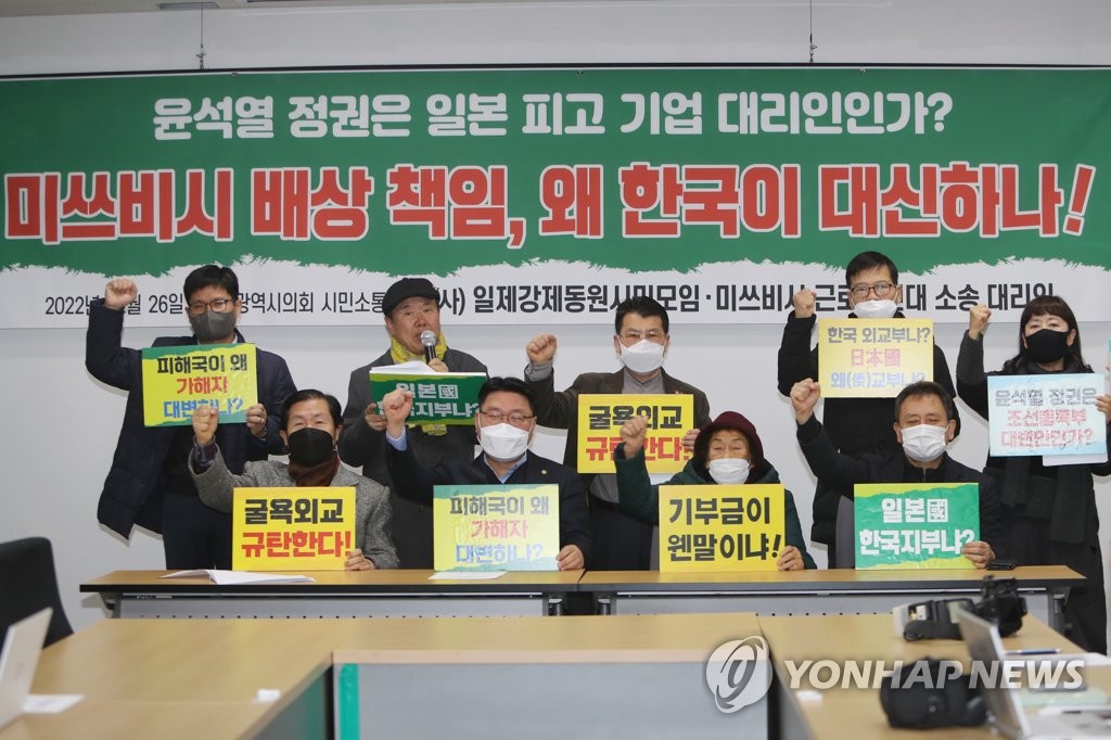 徴用被害者側は会見資料で、「先週、外交部側から強制動員問題に関する韓国政府の有力な案を聴取した」として、韓国の「日帝強制動員被害者支援財団」が韓国企業の寄付で財源をつくり、被害者に弁済するという内容だと伝えた。