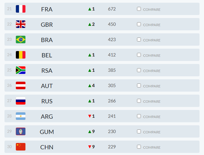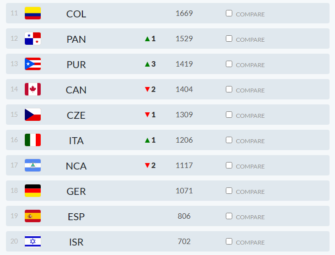 前回は5位だった米国が「WBSC U-12」の優勝などにより、3449ポイントで3位に浮上。韓国は順位を1つ落として4位となった。