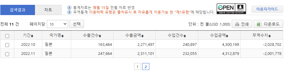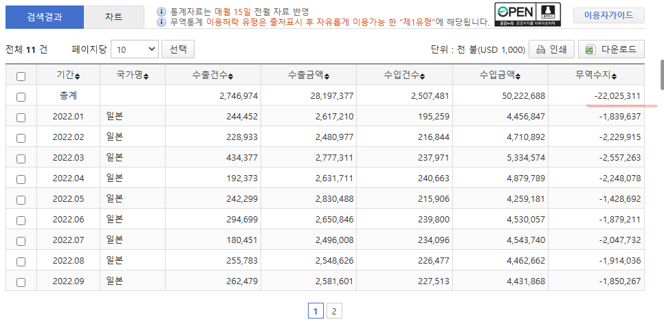 ◆韓国の対日貿易収支2022年1月~11月の累計220億ドル超えの赤字~Wwww
