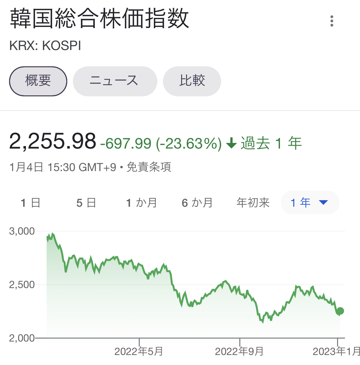 kospiはここ一年半で10,000ウォン下げてるからなぁw
