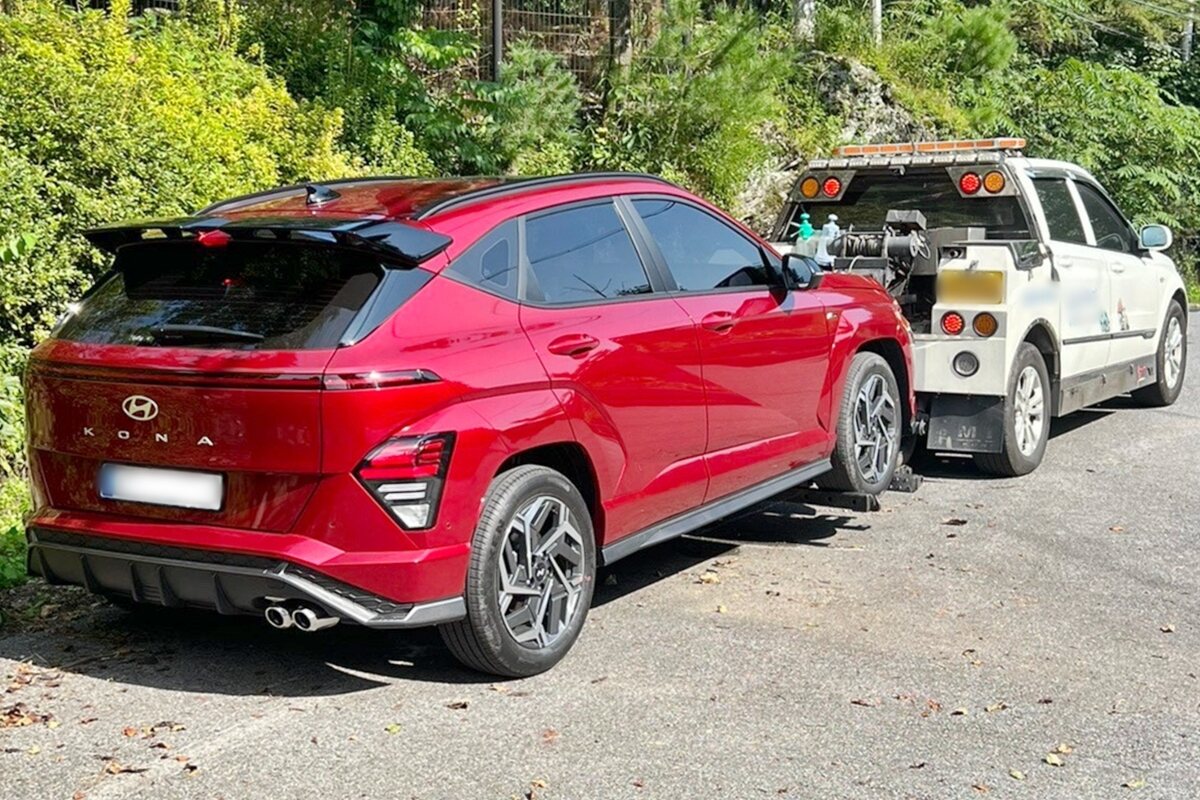 ユーチューバーは「バックしたらフロントバンパーが割れそう」と心配しつつも、タイヤが空回りする中でバックを続けた。その過程で車の下端部が割れるような音と「ドン」という音がしたという。