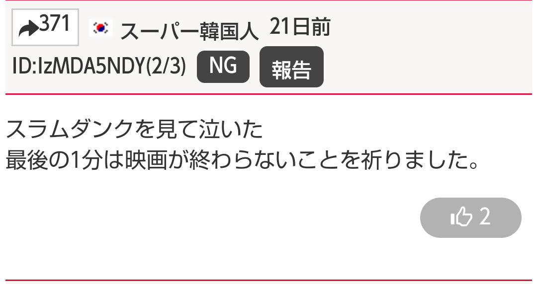 「THE FIRST SLAM DUNK」を見た韓国のネットユーザーからは「僕たちの青春と思い出をよみがえらせてくれる名作」「全てが最高にかっこいい」「観客全員が息をのむ映画」「最近見たアニメの中でナンバーワン」「20年以上の時が流れたけど感動はそのまま」「失望しなかった。期待を超えもしなかった。ただ期待どおりの感動だった」「ノージャパン中だけどスラムダンクだけは諦められない」「みんな見るべき。それ以上の言葉は必要ない」などの声が寄せられている。