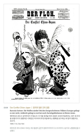 日清戦争勃発直前の1894年7月15日、オーストリアの雑誌「デル・フロー(Der Floh)」はカニ(朝鮮を象徴)を挟んで中国人と日本人がけんかをする場面を描いた風刺画を掲載した。後ろでは女性平和活動家ベルタ・フォン・ズットナーが「武器を下ろせ」と諭している。当時、ヨーロッパの知識人たちは東アジアの状況にも関心を持っていたが、中国と日本、西洋列強の間に挟まれていた朝鮮(または大韓帝国)はカニをはじめ牛、蜂の巣などとして描かれていた。勢力争いの対象に過ぎなかったため、モノや動物として描写されたのだ。