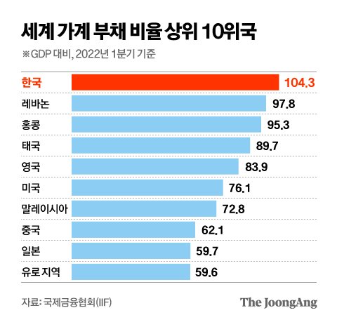 ~韓国家計借金、GDP対比世界1位…金利引き上げ機「借金爆弾」の懸念~
