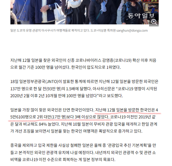 韓国訪れた外国人で日本人が最多…12月8万5693人
