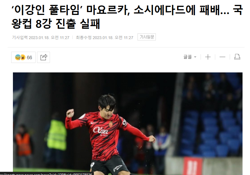 「イ·ガンインフルタイム」マジョルカ、ソシエダードに敗北… ●国王杯、ベスト8進出に失敗