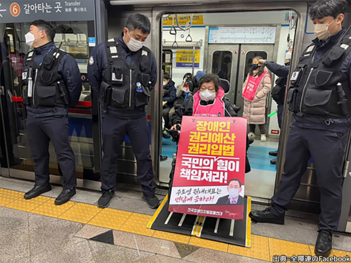 「出勤ラッシュ時の地下鉄乗車デモ」で注目を集めた韓国の全国障がい者差別撤廃連帯(以下、全障連)が、障がい認定制度の実質的廃止などを要求するため、乗車デモを継続する意向を明らかにした。