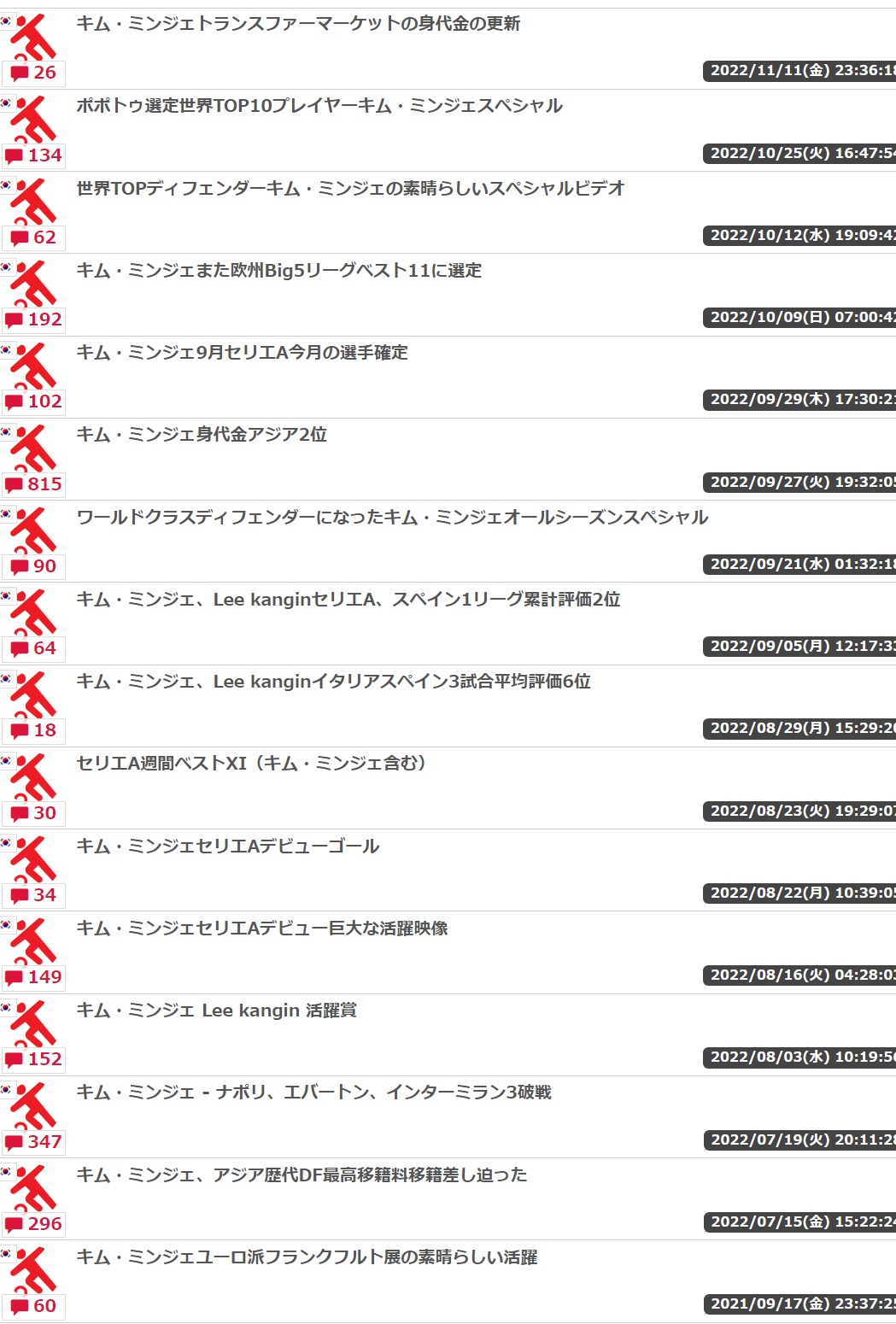 冨安健洋がセリエAでプレーしていた時に、キム・ミンジェが中国リーグとトルコリーグでプレーしていたのは事実。
