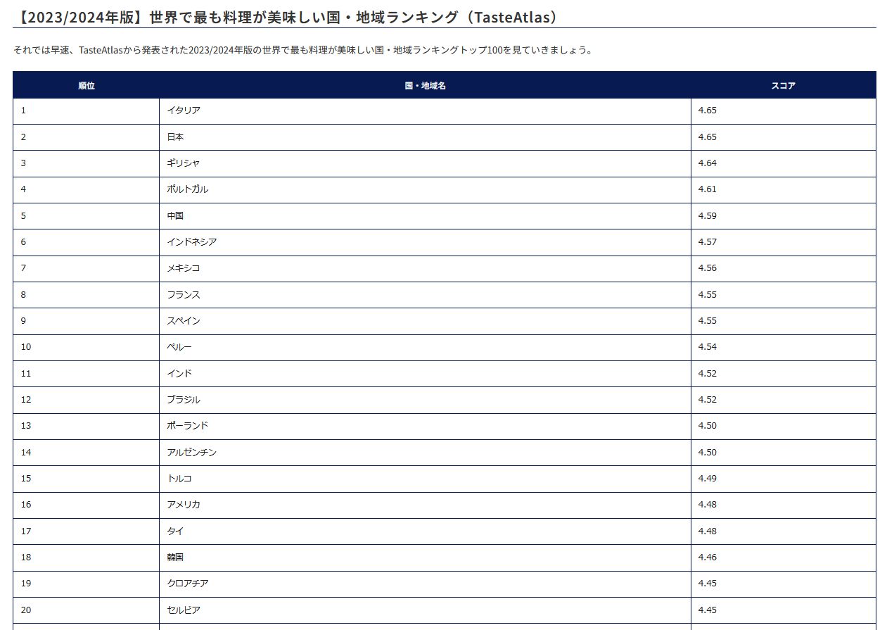 伝統的な料理の体験型旅行ガイド「TasteAtlas」が「2022年版世界で最も美味しい料理ランキング」を発表しました。