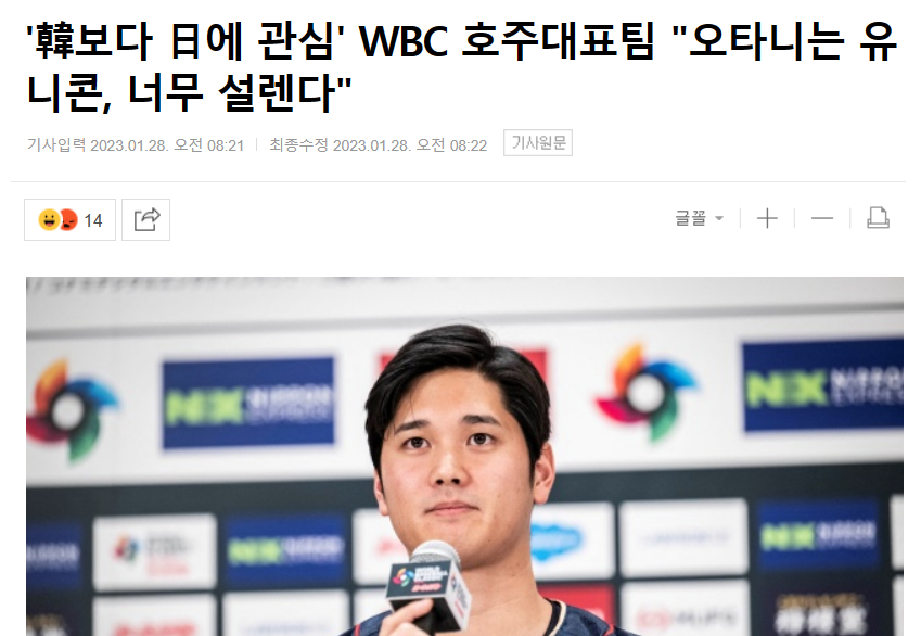 2023ワールドベースボールクラシック(WBC)で韓国と初試合を行う豪州野球国家代表チームが日本に最も関心を示した。 大谷翔平(29)の存在が大きかった。
