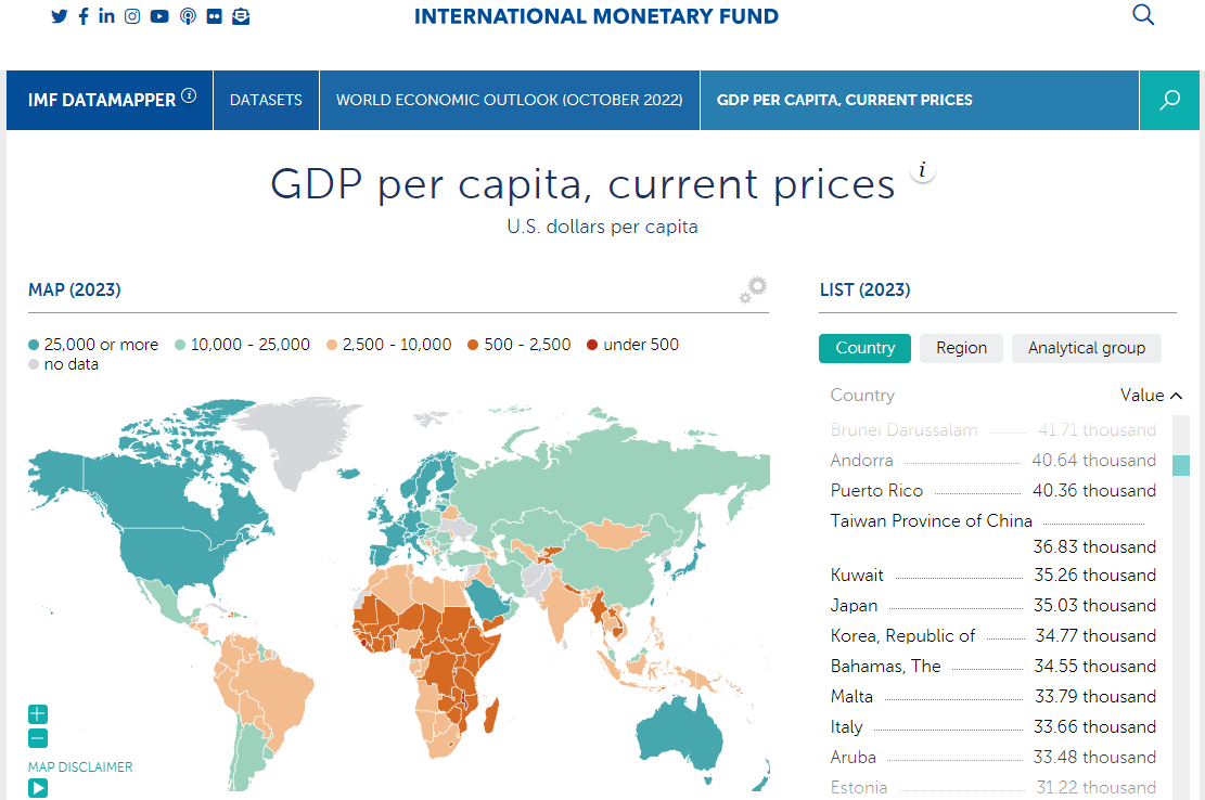 2022年IMF発表GDP