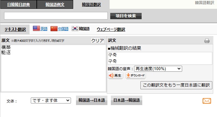 朝鮮語は「構築」と「駆逐」の区別が出来ない。