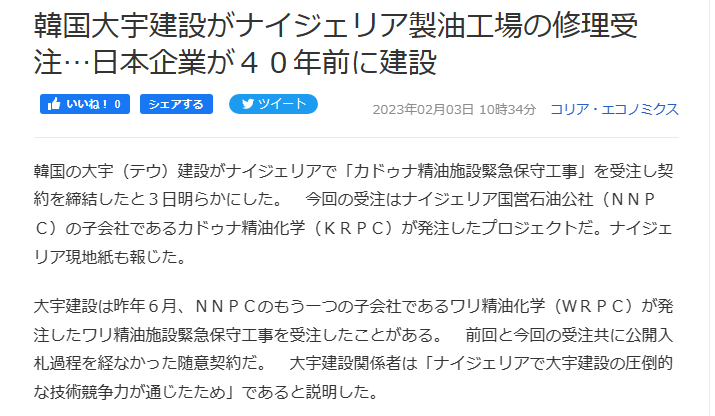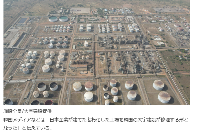 >日本企業が建てた老朽化した工場を韓国の大宇建設が修理するわけだ。