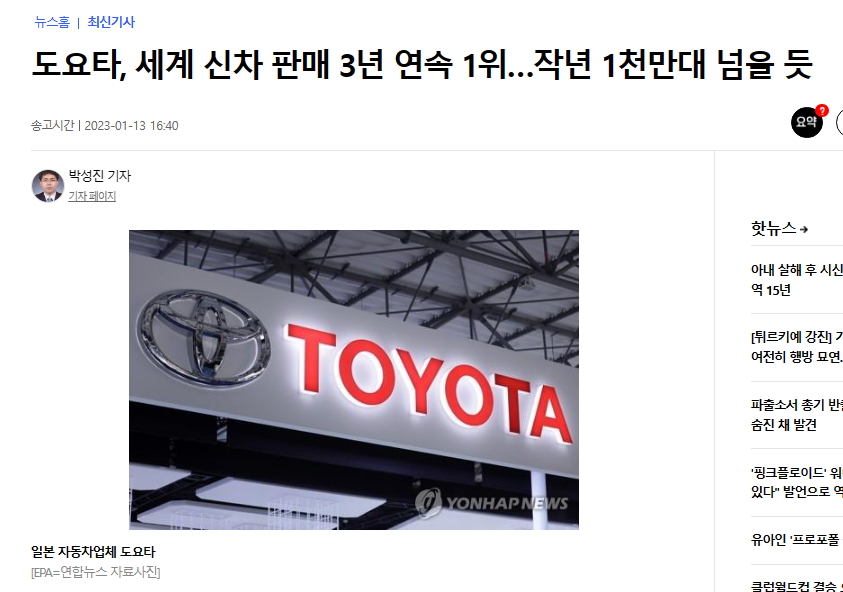 昨年史上最大の実績を記録し、世界3位の完成車メーカーとして生まれ変わった現代車グループに中国市場の回復が最大の課題として浮上した。去る1月26日と27日にそれぞれ昨年年間実績を発表した現代車と起亜はそれぞれ394万余台と290万余台を販売して両社合わせ684万台でトヨタ(1040万台)、フォルクスワーゲン(830万台)に続き世界3位完成車メーカーとして浮上した。現代車・起亜と世界3位の座をめぐって競ったルノー・日産連合とステランティス(プジョー・シトロエン・フィアット・クライスラーなど)は昨年それぞれ625万台と605万台を販売し、現代車・起亜にわずかに押されたそれぞれ4、 5位の座を占めるのにとどまった。(略)