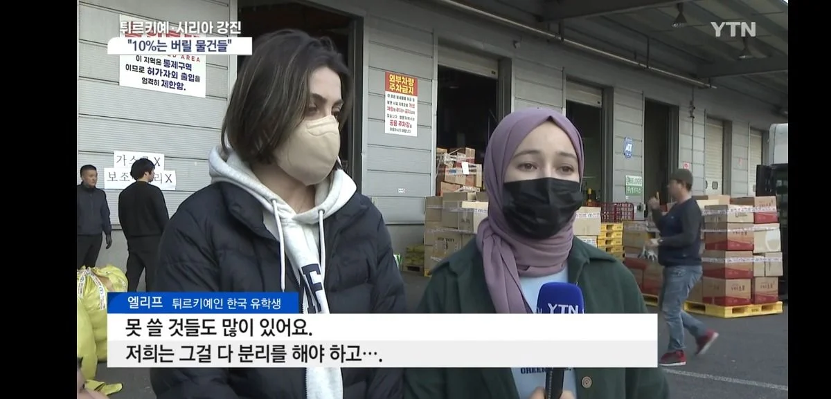 韓国に滞在するトルコ人ボランティアたちも毎日ここを訪れ、物品の分類作業を手伝っています。故国で韓国に対するイメージが悪くなるのではないかと思い、テュルキエに送ることができない品物を一つ一つ選び出しています。