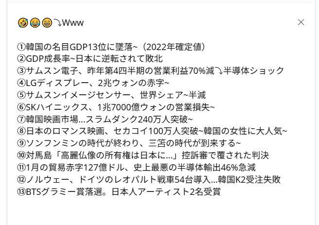 それを知って、わざわざ日本の記事を探しに行って、それを嬉しそうにここに貼り付ける韓国人までいるから、さらに面白い。