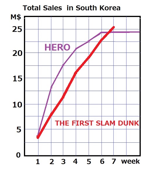 この結果、韓国での「THE FIRST SLAM DUNK」の売上累計は、$25,305,755 となり