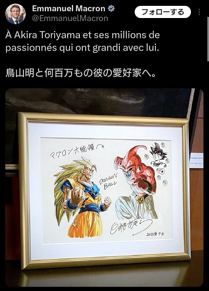 「アキラ」の作者、大友克洋氏を訪問したマクロン大統領。