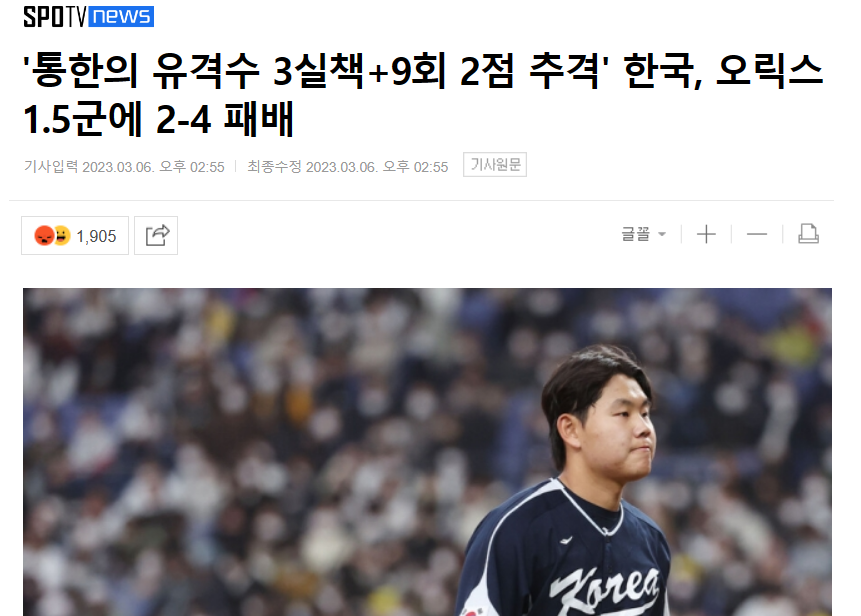 何にしても韓国代表一つ勝てて良かったな。韓国代表、阪神に9安打7得点勝利 3失策の守乱から一変…好守連発で本戦へ勢い
