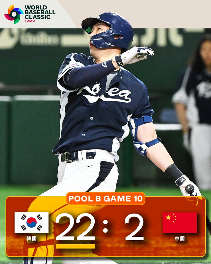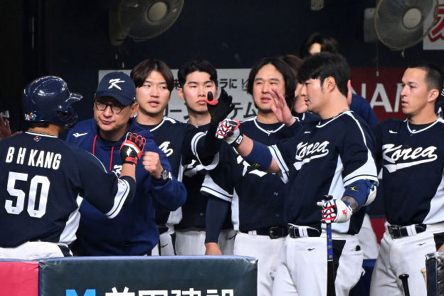 5回には2番手の二保旭投手から下位打線の3連打で同点。1番のトミー・エドマン内野手(カージナルス)が四球を選んで無死満塁とし、キム・ハソン内野手(パドレス)の遊ゴロ併殺打の間に、勝ち越した。さらに2死三塁で3番イ・ジョンフ外野手(キウム)の打席で暴投による1点を加えた。8回にも途中出場のキム・ヘソン内野手(キウム)の右越えソロなどで3点を加えた。