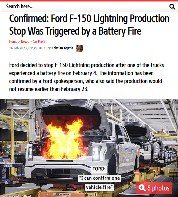 事件は、生産され完成した「F-150」の韓国SK電池が自然発火、ライン上の車に
