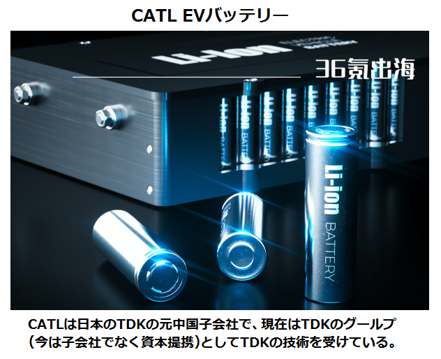 電池量産技術のルーツは日本のTDKである。CATLは家電やスマホ向けではなく、EV向け電池に注力した。