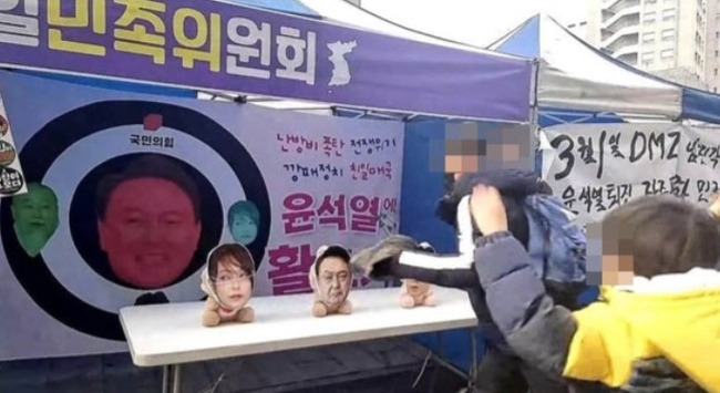 韓国は北朝鮮と何ら変わらない🤭議論の行事は11日午後、ソウル崇礼門一帯で市民団体ろうそく勝利転換行動(ろうそく行動)が主催した第26回ろうそく大行進集会現場で開かれた。 自主民主平和統一民族委員会は、尹大統領夫妻と韓長官の顔写真を貼った人形に向かって、おもちゃの弓を射るブースを設置し、参加を希望する市民に弓を射るようにした。