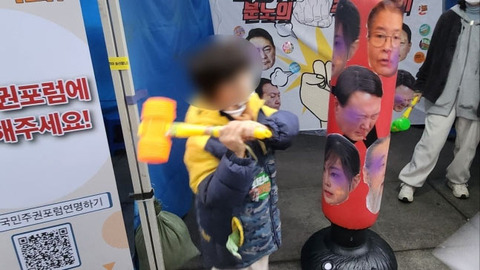 尹錫悦政権糾弾デモに「大統領夫妻サンドバッグ」登場、ハンマーでたたく子どもも
