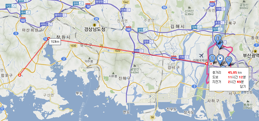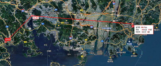 1. 마산과 부산의 거리는 40km 다. ==> 실제로 측정하면 60km 다. (날조 확인)