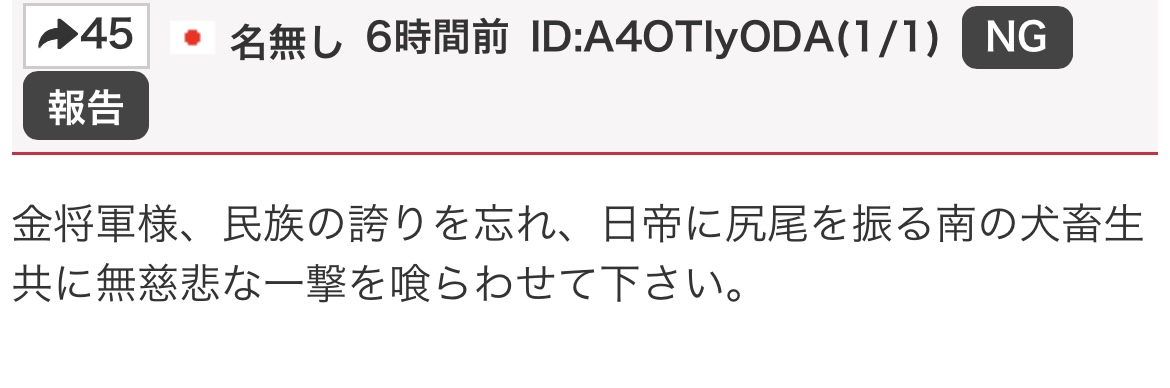 2잡어 일본2023/02/22(Wed) 15:46:11ID:g4NDY5NDA(1/1)NG報告일본은 이기적인 국가니까 당연한 결과다.북한의 미사일로 똑같이 위협받고 있으면서북한의 적화통일을 원하는 쓰레기같은 일본>>5>>6>>8>>10>>12>>15>>260