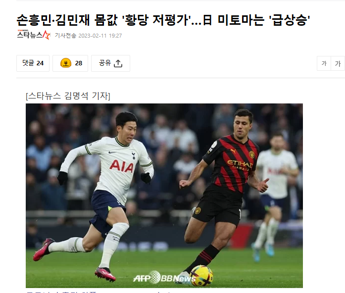 분명 몇달전에는 유럽리그에서 뛰는 한국수비수가 없다고 비웃던 녀석들.>>37