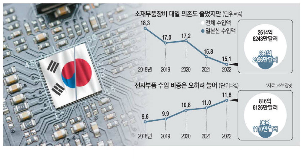 日本の輸出規制措置以後、文在寅(ムン・ジェイン)政府は「所(素材)部(部品)長(装備)自立」を通じて対立を立てた。 しかし産業現場では、日本に対する中間素材依存度が容易に改善されず、部品調達と生産が支障をきたす事例が少なくないと口をそろえる。 「所長長自立」が長期的に方向は合うが、短日中になされにくい課題だからだ。 専門家らはサプライチェーンの安定化はもちろん、技術格差を減らすための戦略レベルでも日本との関係回復が重要だと助言した。