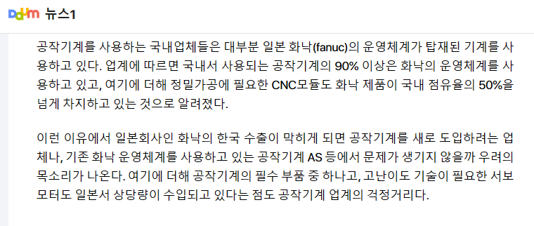工作機械を使用している国内企業の多くは、日本ファナック(fanuc)のオペレーティングシステムが搭載された機械を使用している。業界によると、国内で使用される工作機械の90%以上は、ファナックのオペレーティングシステムを使用しており、これに加えて、精密加工に必要なCNCモジュールもファナック製品が国内シェアの50%を超えて占めていることが分かった。