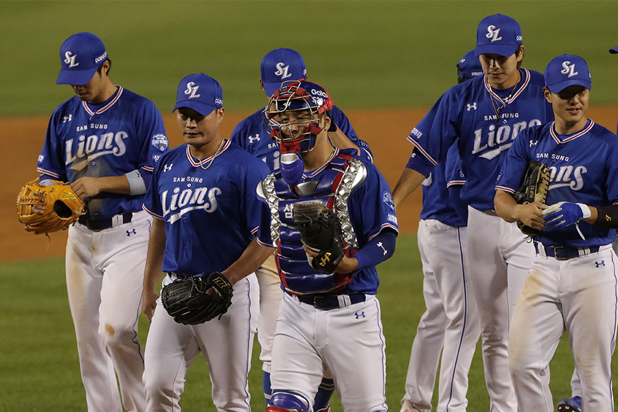 それでも、二死一塁で5番カン・ヒョヌ(21)が打席に立った場面で、初球で盗塁を試みた一塁走者を捕手キム・ソンウ(19)が刺し、3アウトで回を終えた。