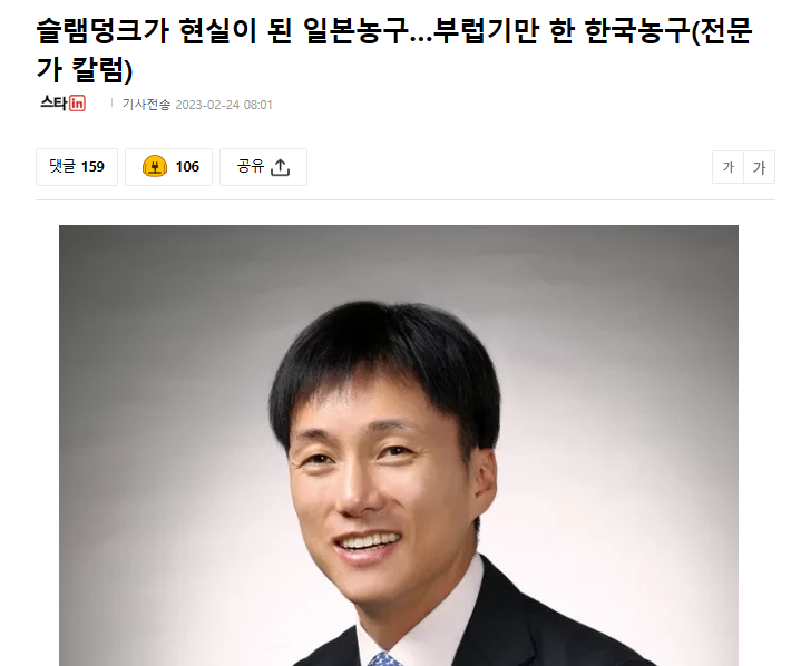 2023年2月24日、韓国・スターinは「スラムダンクが現実になった日本バスケ界…うらやましい限りの韓国バスケ界」と題するソウル大(体育教育課)教授のコラムを掲載した。以下はその概要。