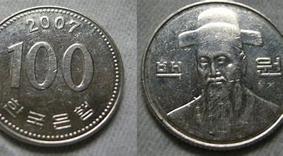 韓国の通貨のうち、1973~93年に使われた500ウォン札(1ウォン=約0.1円)と、1983年から現在まで使用されている100ウォン硬貨には、画家チャン・ウソン(故人)が描いたイ・スンシン(李舜臣)将軍(1545~98)の肖像画が用いられている。