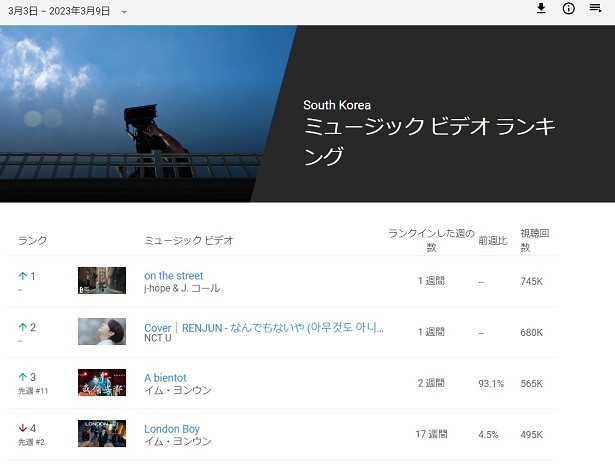youtube 韓国 music video ranking