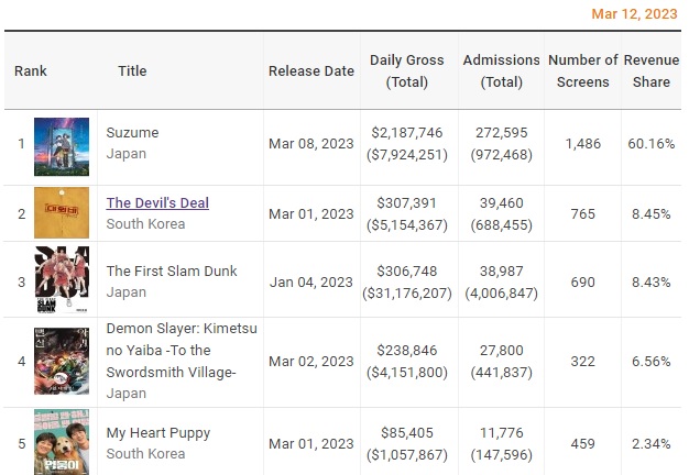 日本に完全敗北した韓国映画界、Top5のうち3つが日本アニメ「クリエイティブ分野でも日本に勝てない」